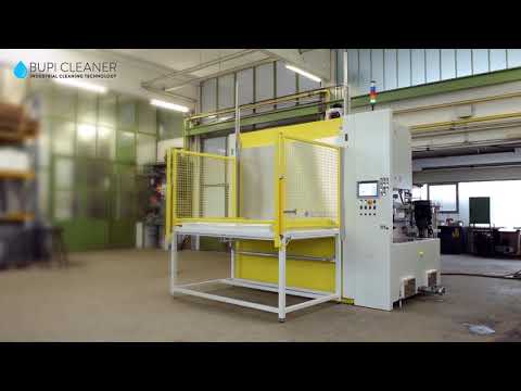 Die Maschine ist aus Edelstahl gefertigt und besteht aus einer Kabine mit einem rotierenden Korb, einem Tanksystem und einem manuellen oder automatischen Fördersystem. Eine ergänzende Ultraschall-Reinigungsfunktion ist als Option verfügbar.