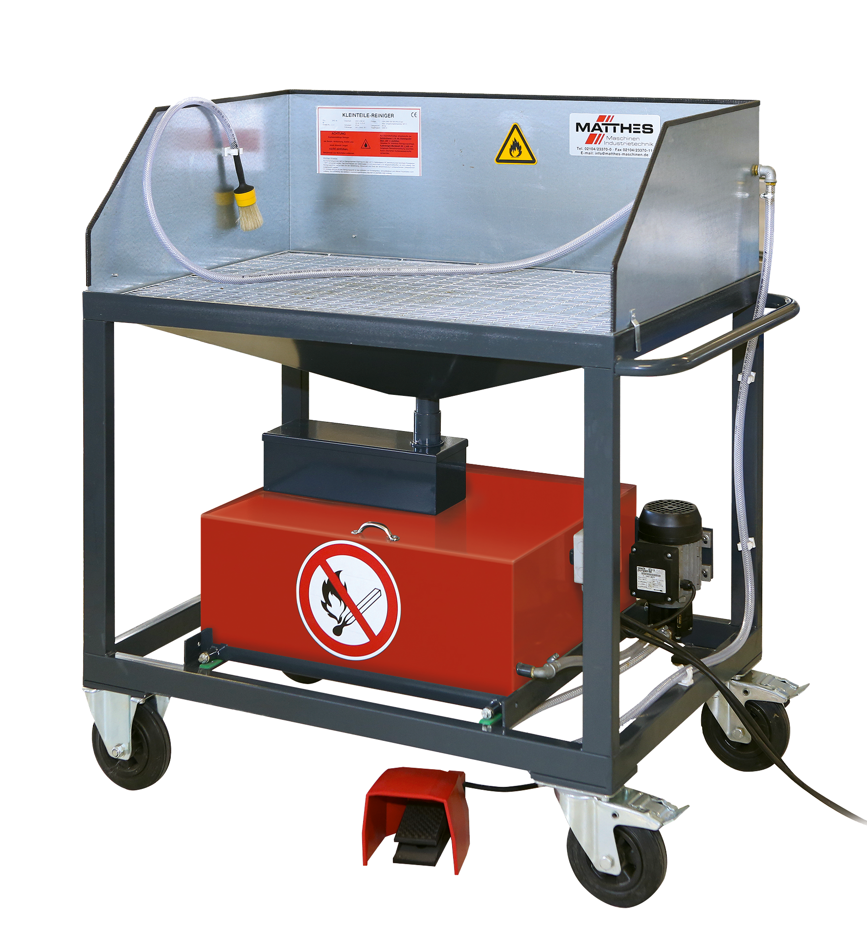 Der MATTHES-MK 1 ist unser Einstiegsmodell bei der schnellen, wirtschaftlichen und umweltbewussten Reinigung von Kleinteilen. Das in sich geschlossene Reinigungsmittelsystem, kombiniert mit je 2 Bock- und Lenkrollen, macht unseren Kleinteilereiniger mobil und flexibel einsetzbar.